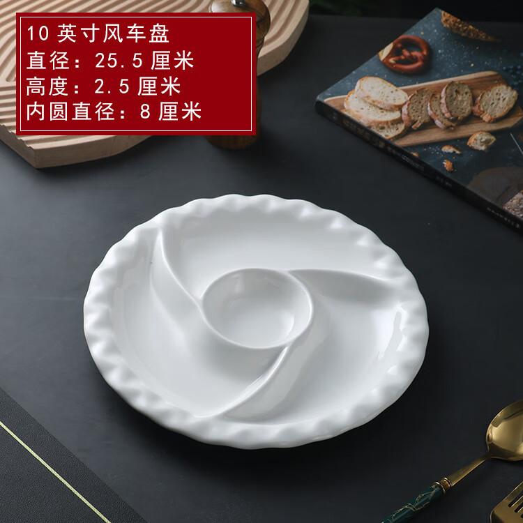 朗玺陶瓷盘子菜盘家用高级感卤水拼盘酒店饭耐高温蒸盘小吃分格盘多格 风车蒸盘 10英寸