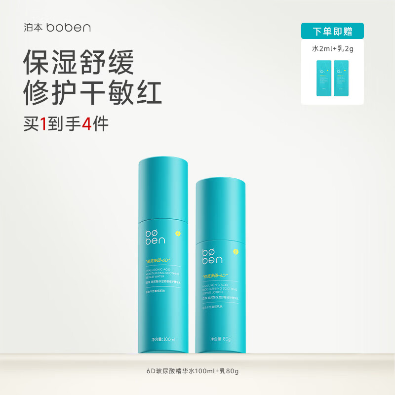 泊本【余承恩同款】6D玻尿酸水乳套装修护保湿补水舒缓泛红敏感护肤品 2件套:6D玻尿酸水乳100+80