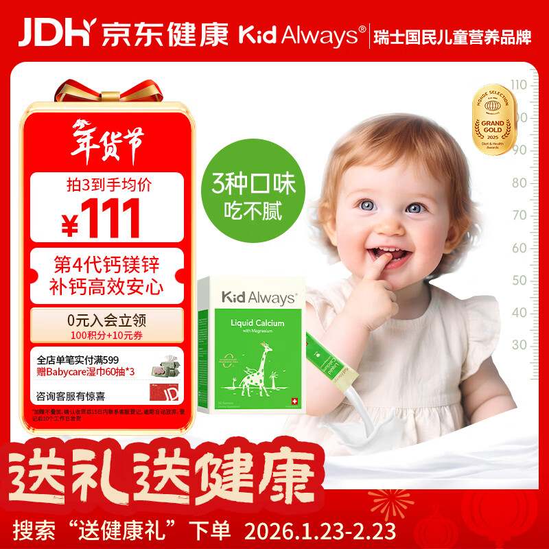 Kid Always童年多多液体钙镁锌儿童婴幼儿宝宝补钙含赖氨酸400IUd3 30条/盒