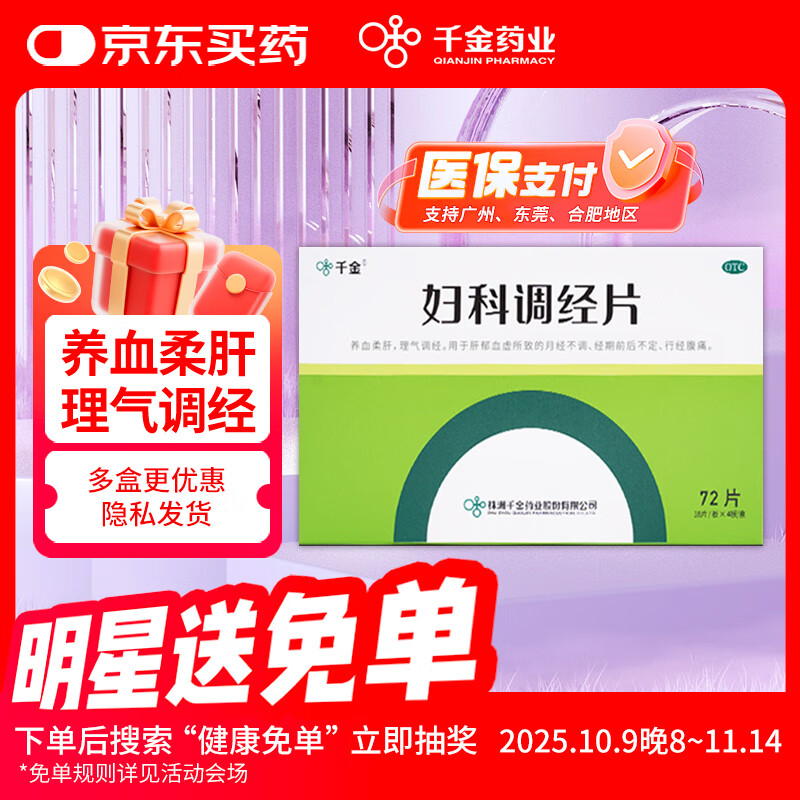 千金妇科调经片0.31g*18片*4板 调经养血月经不调经期前后不定行经腹痛;