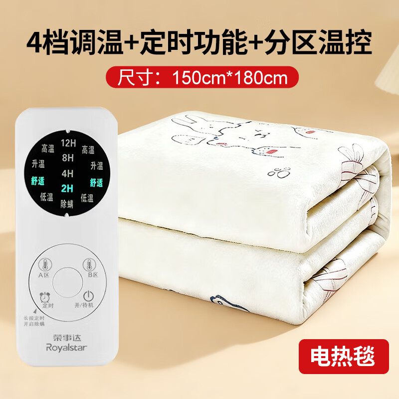 荣事达电热毯单人双人双控石墨烯调温家用电热毯电褥子宿舍暖身毯6 180CM*150CM(双人标准款)