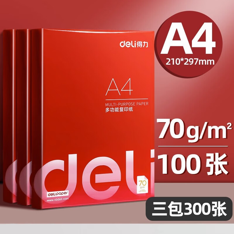 Delijia得力佳【甄选】得力a4纸打印复印纸70g单包100张a4打印纸办公用品草稿纸 【A4】70g-三包300张【三包更划算】