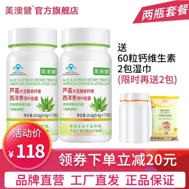 美澳健芦荟胶囊大豆膳食纤维西洋参荷叶 成人中老年润肠通便秘 药店同款