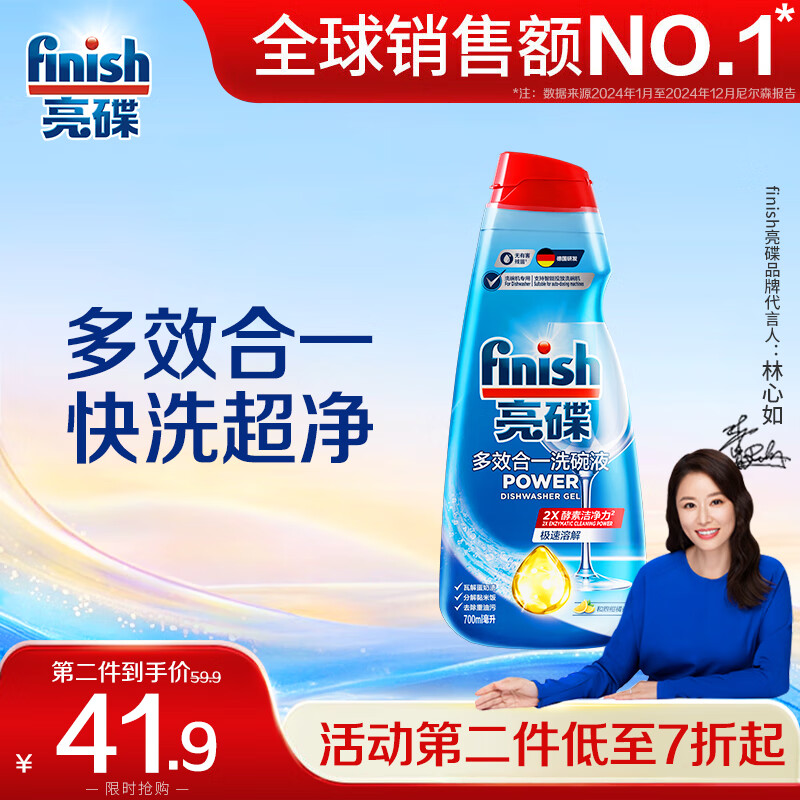 亮碟(finish)洗碗机洗涤剂清洁剂洗碗液多效合一去污去渍 通用各大品牌洗碗机 洗碗液1瓶装 700ml/瓶