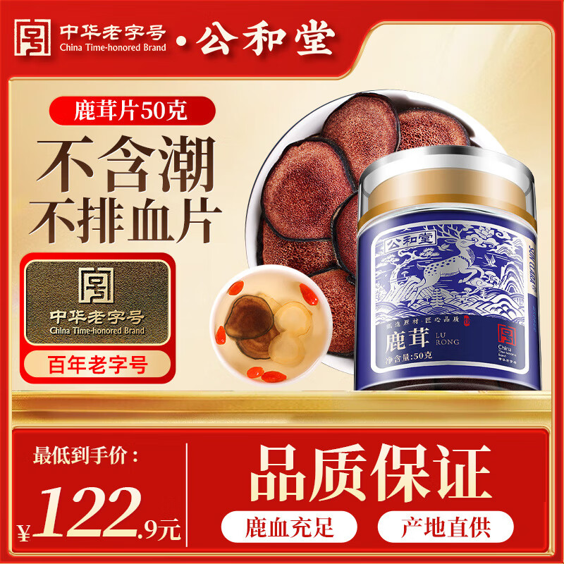 公和堂 鹿茸50g长白山搭梅花鹿茸整枝全蜡片男性煲汤泡酒中草药材