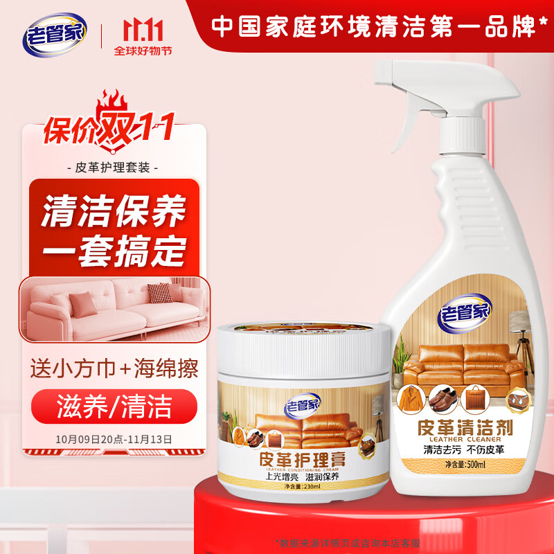 老管家皮衣保养油护理油真皮鞋油无色通用鞋蜡皮革皮沙发去污护理清洁剂 皮革清洁剂+护理膏