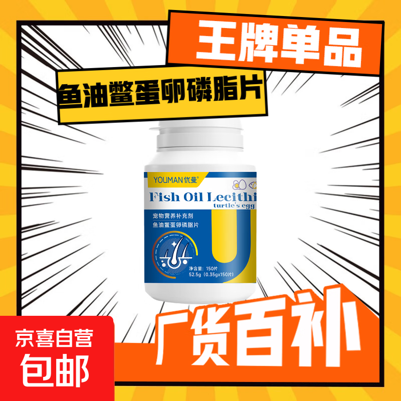 狗狗猫咪卵磷脂宠物磷虾鱼油美毛亮毛护肤增色鳖蛋卵磷脂片 【亮毛护肤】鱼油鳖蛋卵磷脂片 150片/瓶