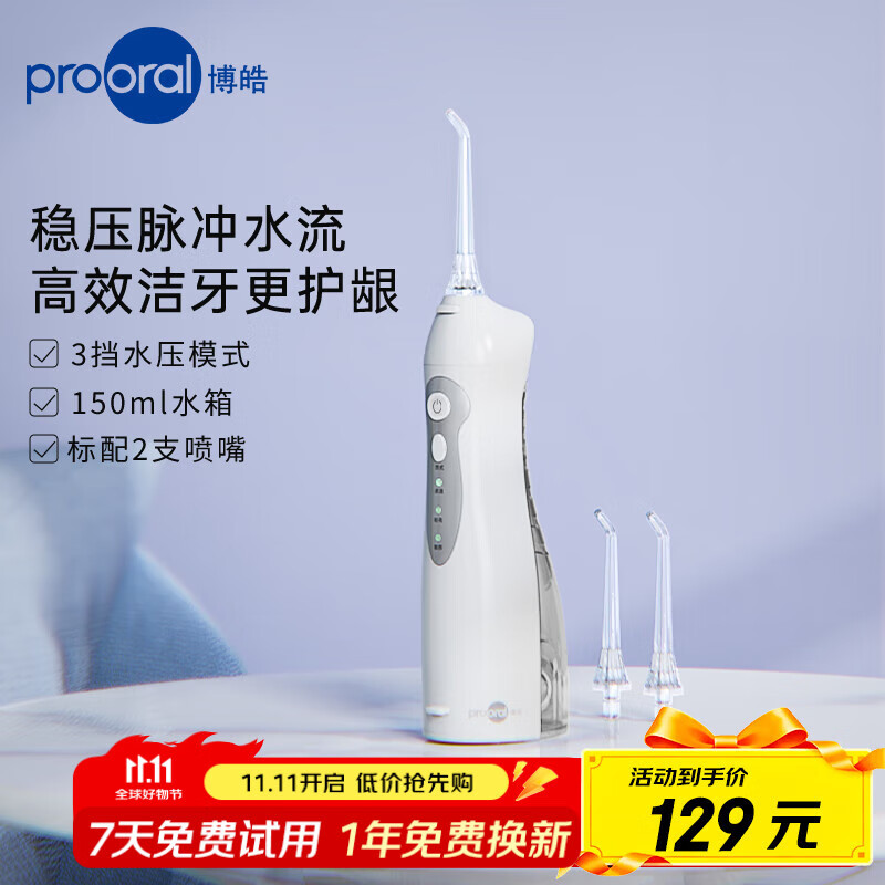 博皓(prooral)冲牙器牙齿冲洗器便携式家用洗牙器水牙线正畸洁牙器牙缝清洁器 送情侣朋友礼物 5002A系列 白色
