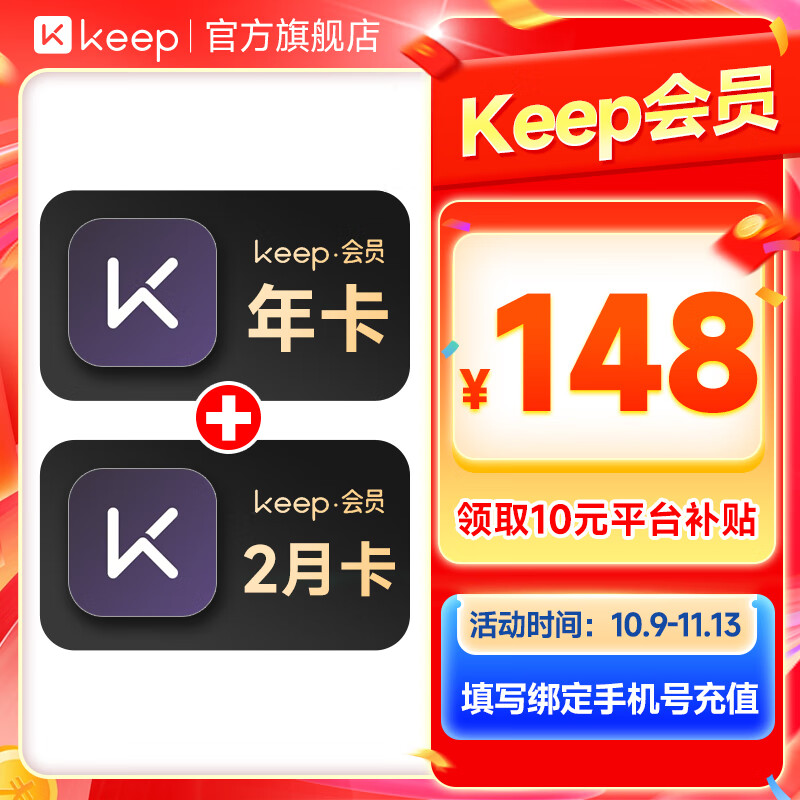 【赠2月】Keep会员年卡+2月卡 Keep会员14个月 运动健康健身vip年卡 填手机号充值实时到账