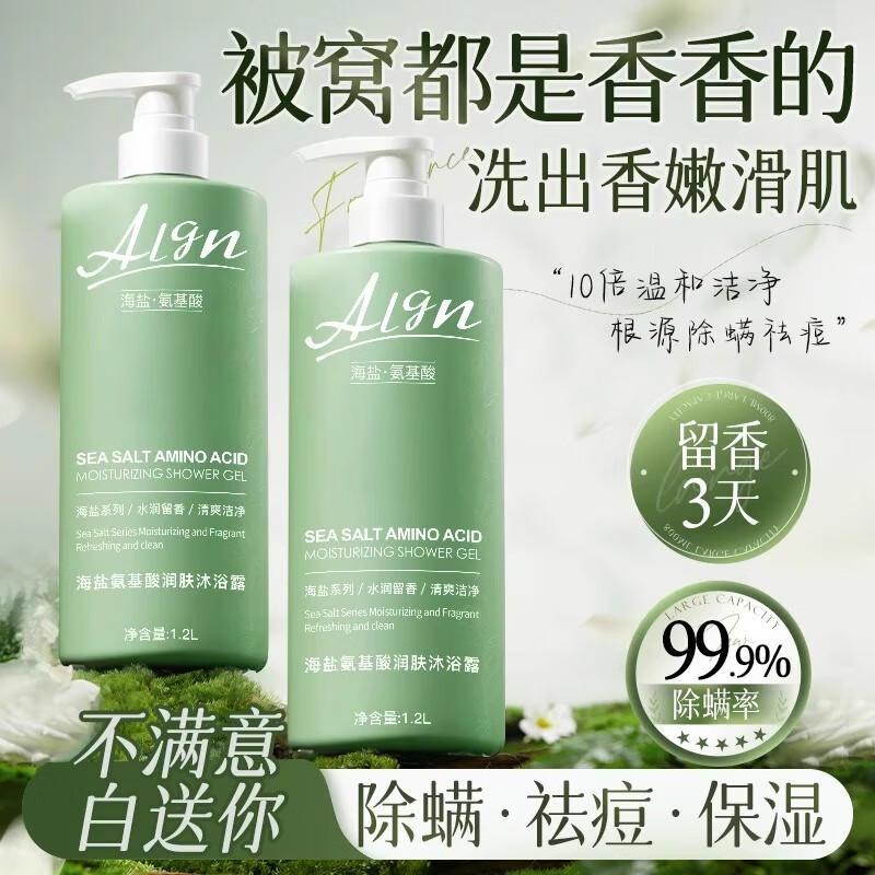 爱兰歌娜海盐氨基酸沐浴露持久留香72小时香体清爽控油薄荷冰爽大瓶家庭装 海盐氨基酸沐浴露1200ml*2瓶