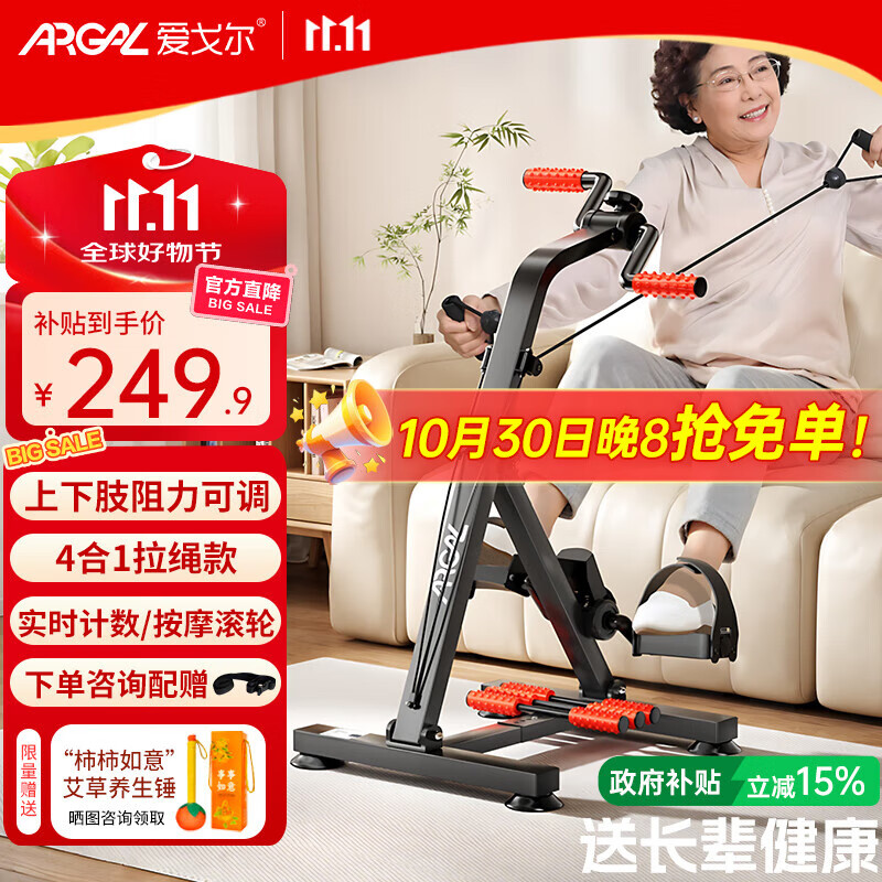 爱戈尔家用上下肢锻炼器材 老年人中风偏瘫脑梗康复训练脚踏车器材走路 A116-4合1拉绳款【全面升级/多功能全方位】 中老年人专用