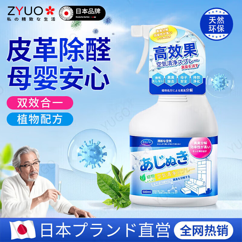 ZYUO【日本】除甲醛喷剂皮沙发除味母婴沙发皮床家具衣柜去异味新房急 2025新升级 500ml 1瓶 体验装 光触媒除甲醛新房车急住