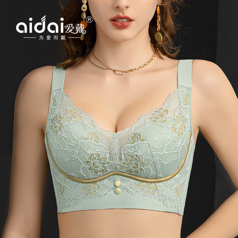 爱戴新款内衣女小胸聚拢显大不空杯调整型收副乳无钢圈上托美背文胸罩 绿色 80B