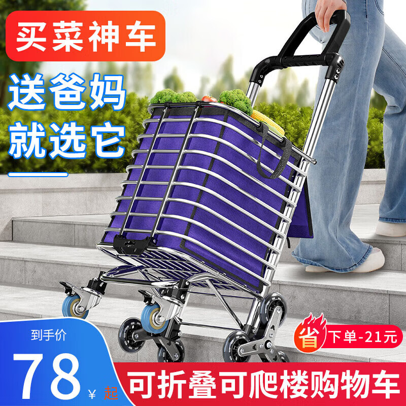 美纳美买菜车购物车拖车小拉车老人买菜手拉车爬楼可折叠拉杆行李车小车 标准爬楼款六轮折叠两用【紫色】