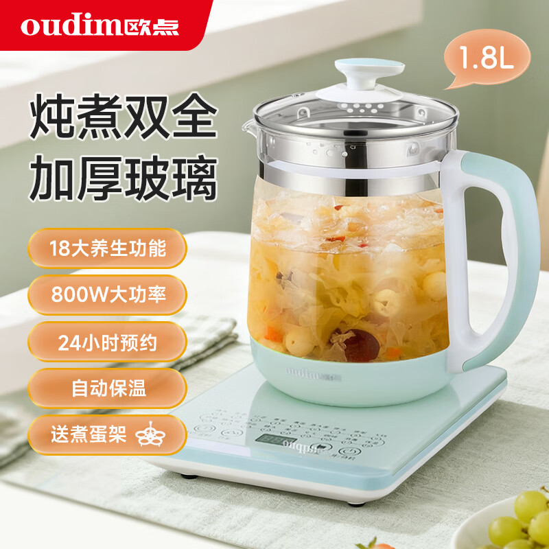欧点 多功能养生壶玻璃煮茶器保温容量1.8升养身壶定时预约烧水壶304不锈钢煮茶壶煮茶器泡茶壶 【时控款】 1.8L