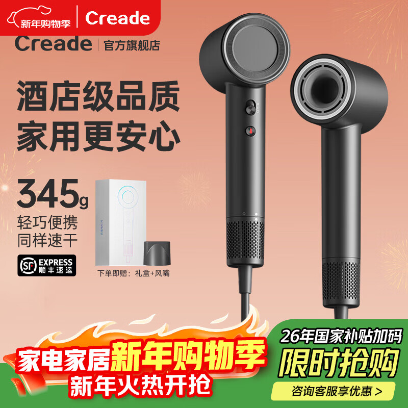 Creade科瑞德高速吹风机吹头发家用大功率速干负离子护发不伤发电吹风筒新年女生日礼物K-4043礼盒装 K-4043铂金灰礼盒装【赠集风嘴】