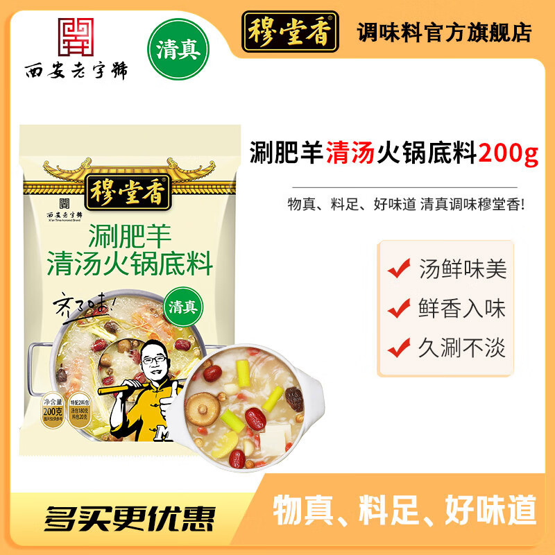 穆堂香涮肥羊清汤火锅底料清真老北京涮肉200g家用清汤免辣 涮肥羊火锅底料(清汤)2袋装