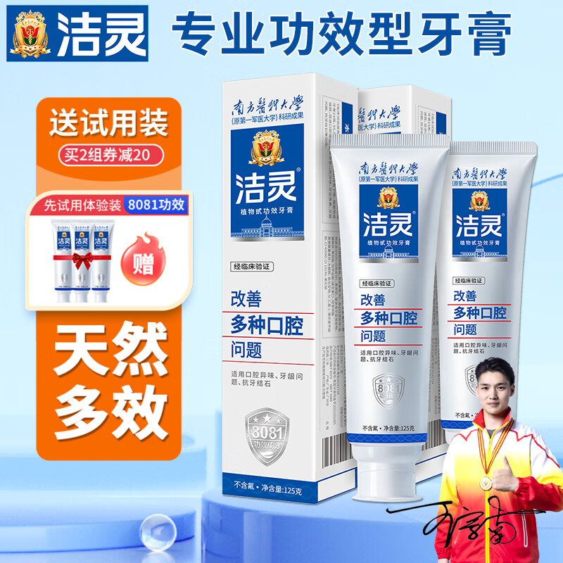 洁灵改善多种口腔问题牙膏组合 多效护理牙龈去渍清新抗敏感 冬青薄荷125g*2支