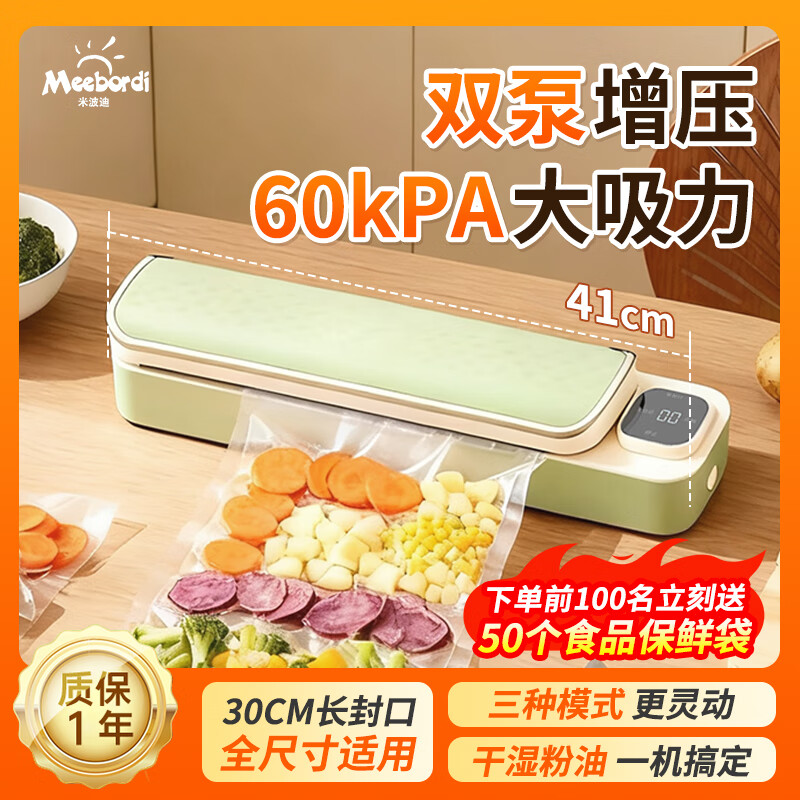 米波迪(Meebordi)真空封口机家用商用全自动抽真空机食品打包塑封包装机腊肉腊肠真空压缩神器生日礼物送50只塑封袋
