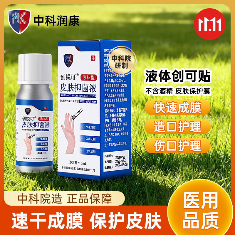 创锐可中科润康液体创可贴10ML秋冬皮肤皲裂倒刺伤口防护杀菌率99.9% 创锐可10ml涂抹型