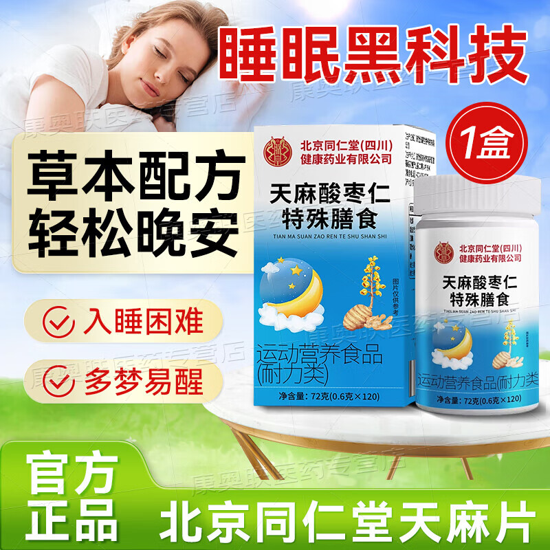 北京同仁堂天麻片睡眠天麻酸枣仁中老年官方正品可搭朗朗上口牌 1盒【买2贈1同款】