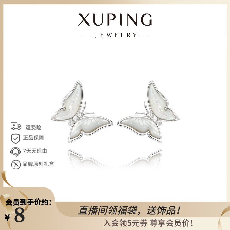 XUPING旭平首饰合金时尚气质甜美百搭仿贝母蝴蝶耳钉送礼饰品X001060623 耳钉