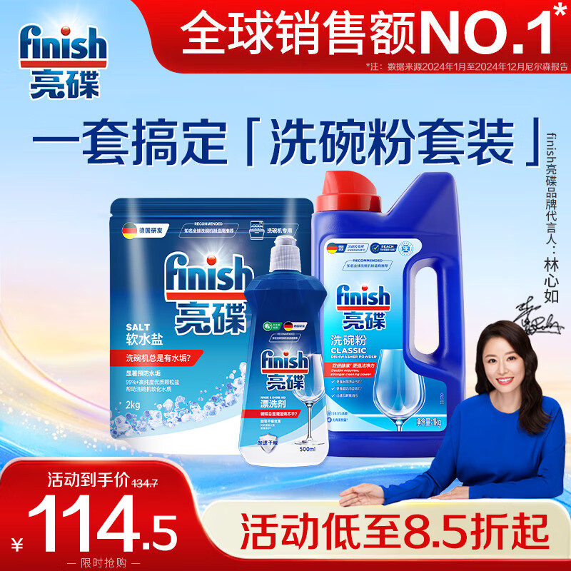 亮碟(finish)洗碗机清洁剂套装专用软水盐洗涤粉剂光亮剂 去油污去渍 洗碗粉+软水盐+光亮剂