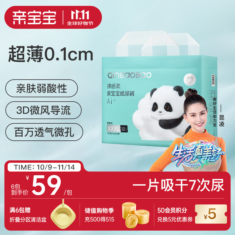 亲宝宝裸感柔Air系列拉拉裤超薄干爽透气新生儿婴儿尿不湿尿片 拉拉裤-3XL【32片】体重17KG以上