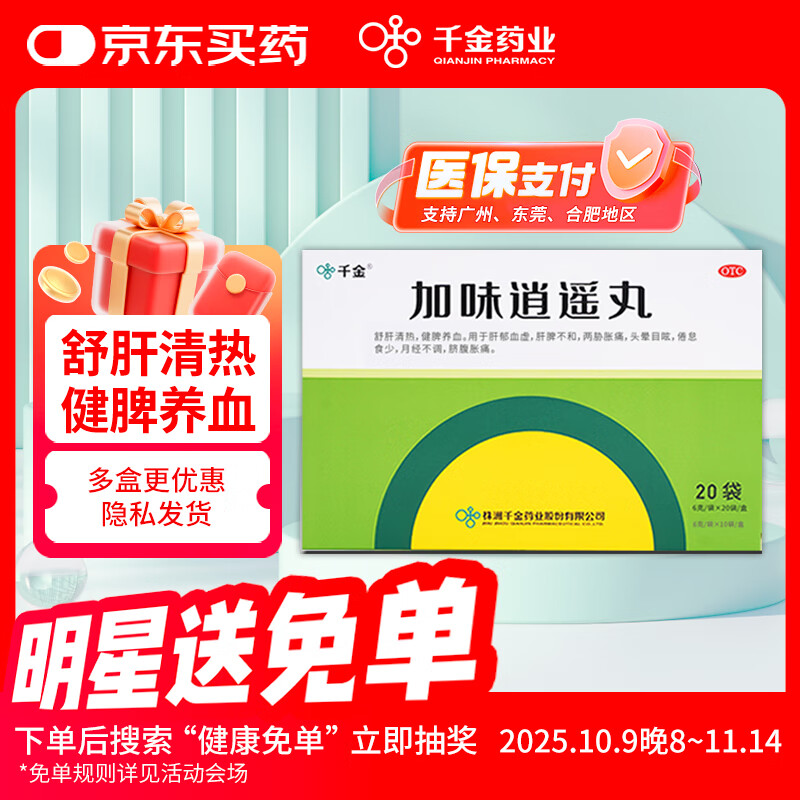 千金加味逍遥丸6g*20袋 逍遥丸舒肝健脾养血头晕目眩肝脾不和月经不调脐腹胀痛去肝火排肝毒妇科用药