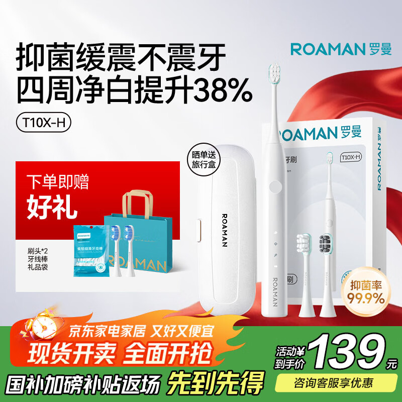 罗曼(ROAMAN)电动牙刷女士男士专用成人声波375天续航缓震包胶软毛刷头生日情侣节日礼物小果刷t10x-h白色