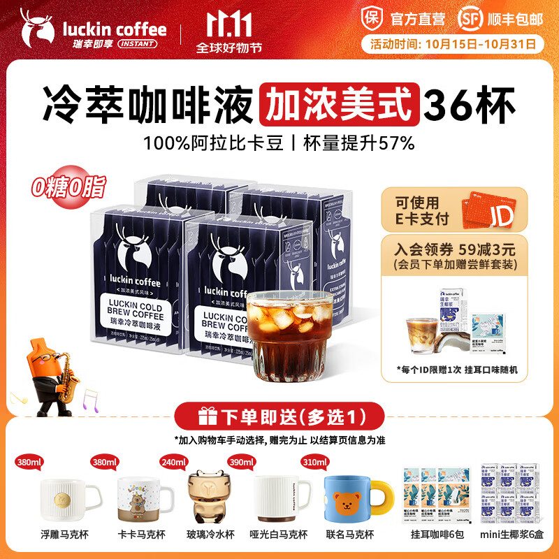 瑞幸咖啡0糖0脂冷萃咖啡液浓缩速溶冰美式生椰拿铁无糖黑咖啡25ml 【爆款热销】加浓美式4盒共36杯