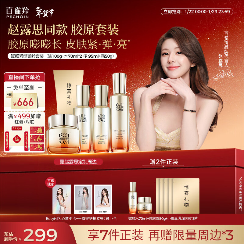 百雀羚【赵露思同款】御龄套装洁水水乳霜 胶原霜紧致抗皱淡纹新年礼物
