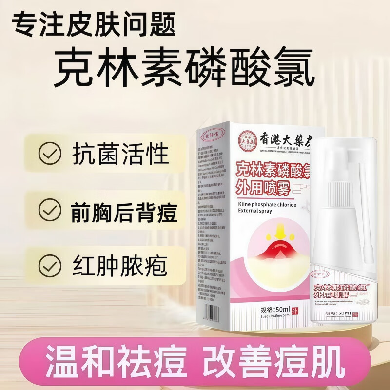 克林素磷酸氯外用喷雾可搭霉磷酸酯溶液喷剂祛痘毛囊后背痘痘炎 1盒50ml【基础装】可搭克林外用霉磷酸酯溶液喷剂 京仓药房直发