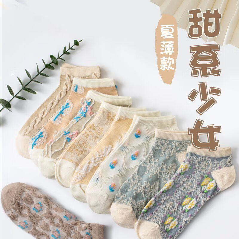 朋意袜子女夏季复古风薄款防臭短袜ins潮浅口港风文艺碎花女士袜子 甜系少女 均码 【10双】