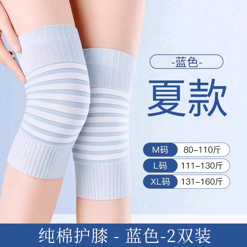 朋意夏天季轻薄款蚕丝护膝盖保暖老寒腿男女士关节防寒运动护套空调房 轻薄透气【蓝色】2双 M