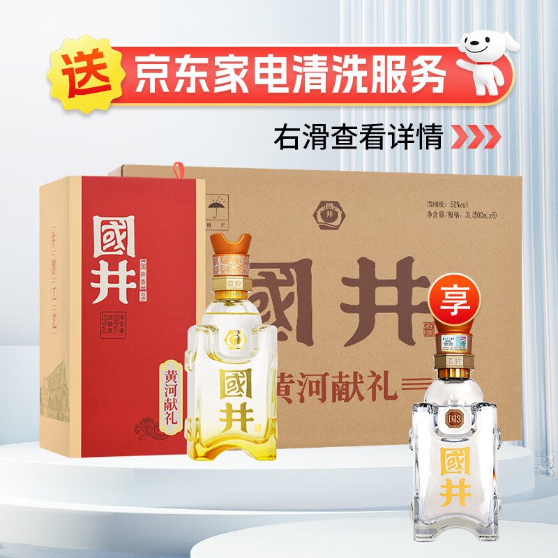 国井白酒 52度黄河献礼 国井香纯粮酿造白酒 礼盒装自饮送礼山东名酒 52度 500mL 6瓶 整箱装