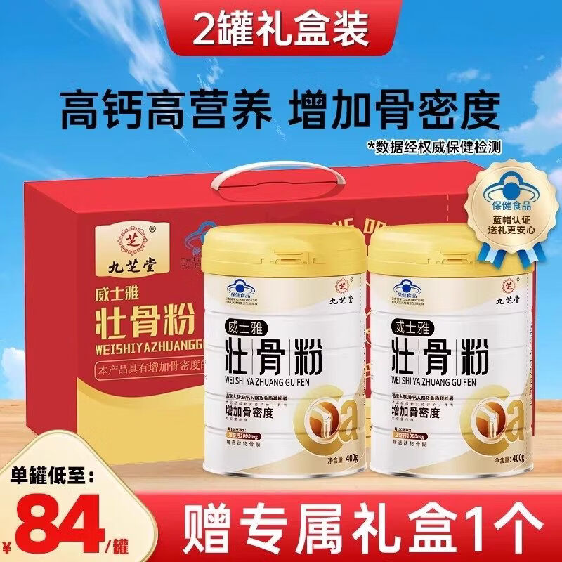 九芝堂壮骨粉400g中老年人营养品骨折骨裂健骨补钙年货送礼送父母长辈 【礼盒送礼装】壮骨粉 400g*2罐