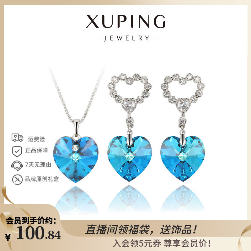 XUPING旭平首饰仿水晶经典海洋之心耳饰项链套装送生日礼物送女生饰品 1号色 一套