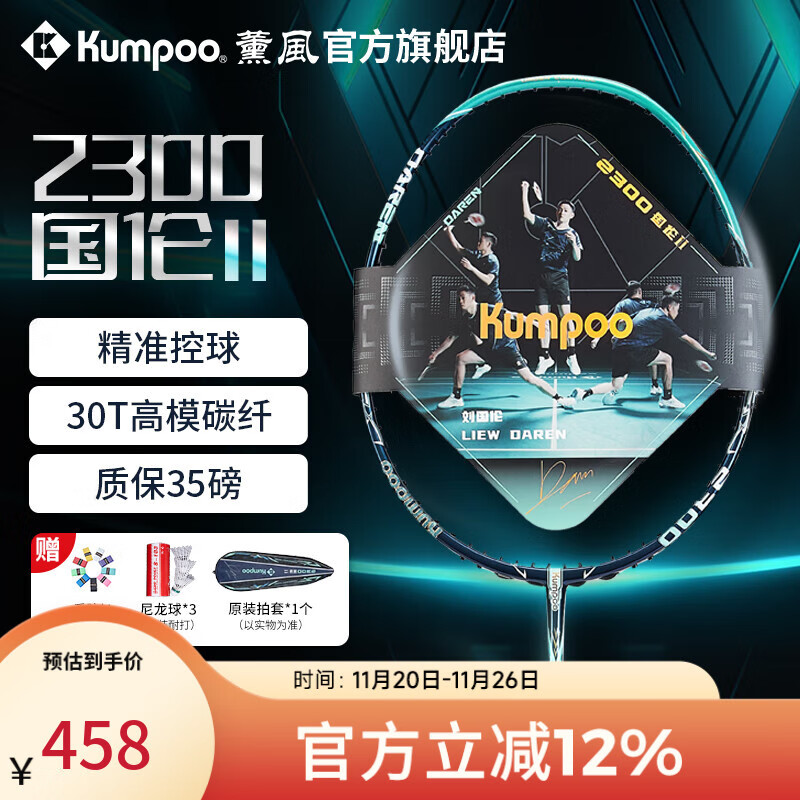 薰风(KUMPOO)国伦二代羽毛球拍 全碳素30T高模碳纤熏风专业训练比赛全能型球拍 国伦二代 琥珀蓝 成品拍