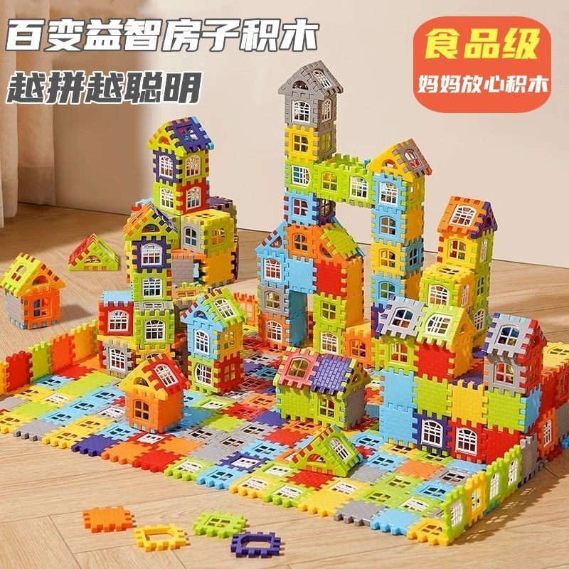 钒象智科搭房子积木带窗户幼儿园儿童方块塑料拼插房子组拼装女男孩 搭房子积木48