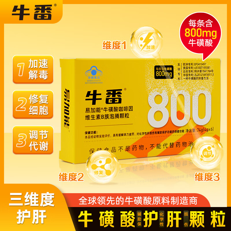 牛番牛磺酸护肝泡腾颗粒非奶蓟草护肝片养肝男官方旗舰店熬夜 3盒装*6条
