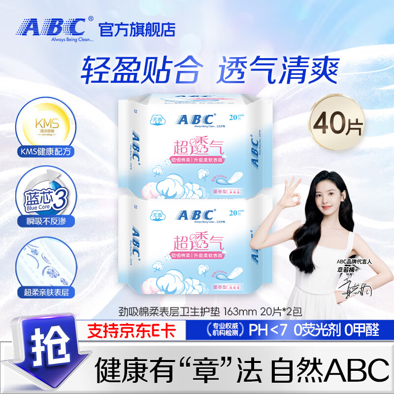 ABC卫生巾KMS健康配方劲吸棉柔卫生护垫姨妈垫 ABC劲吸棉柔卫生护垫163mm*40片