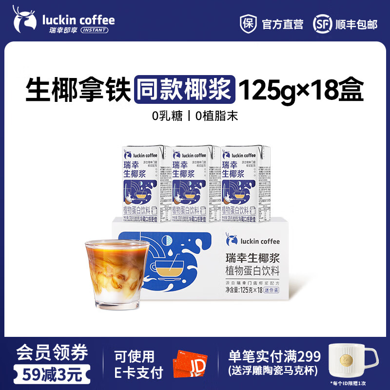 瑞幸咖啡门店同款生椰浆咖啡伴侣0乳糖0植脂末生椰拿铁椰汁椰浆椰奶厚椰乳 mini生椰浆125g*18盒