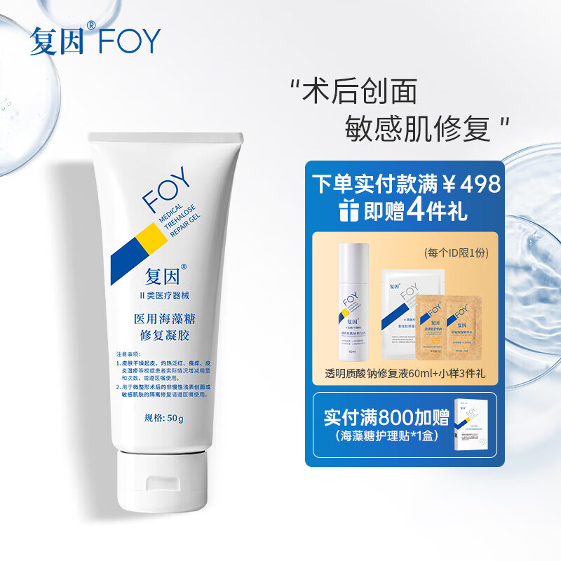 复因FOY 医用海藻糖修复凝胶微整形术后创面护理敏感肌修复 医用海藻糖修复凝胶50g【京东仓发货】