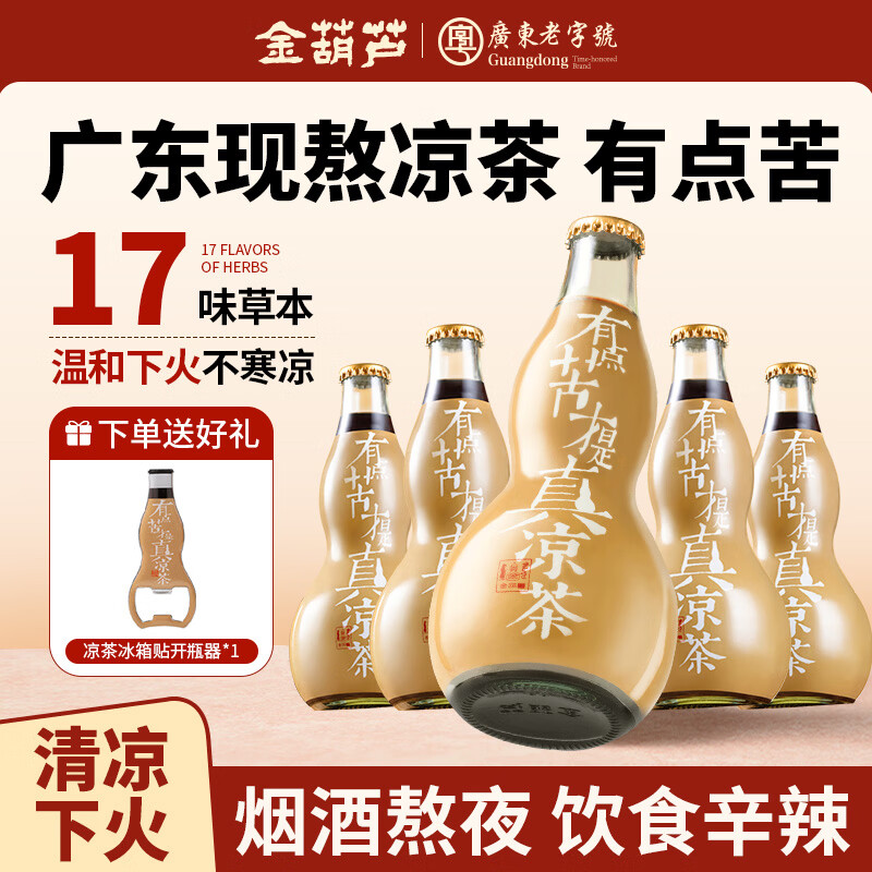 金葫芦广东凉茶金银花降去熬煮火湿茶清凉广式凉茶特产微苦无添加茶饮料 【润燥下火】一箱5瓶+开瓶器