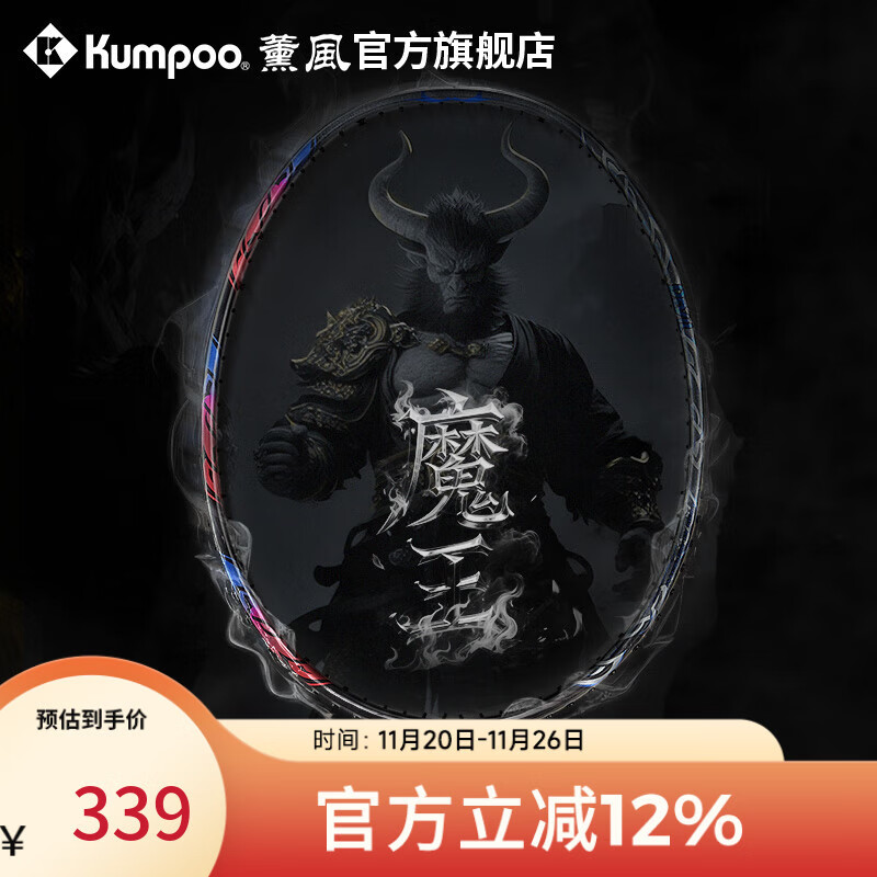 薰风(KUMPOO)魔王羽毛球拍全碳素超轻4U男女专业高磅耐打进攻型球拍熏风DEVIL 黑蓝色 成品拍