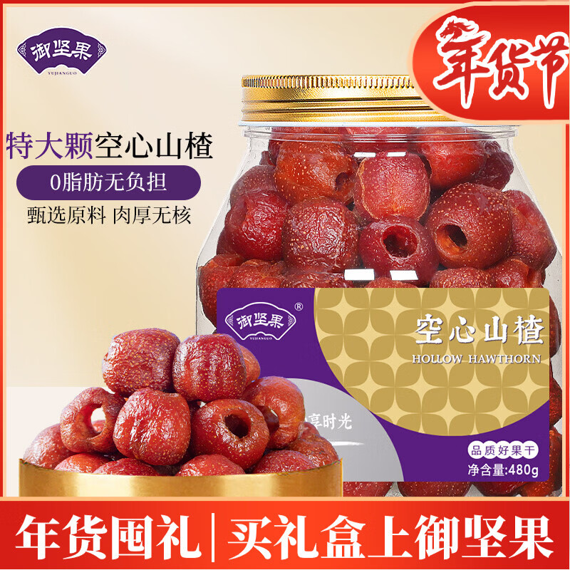 御坚果(YUJIANGUO)空心山楂400g无添加剂无核蜜饯果脯儿童休闲零食年货 空心山楂400g*1罐【过年大鱼大肉解腻】