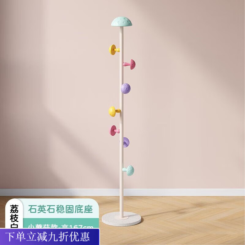 倘然之家彩色儿童房衣帽架家用室内衣架落地立式简约现代童趣蘑菇挂衣服架 【荔枝白大尺寸】石英石底座 【马卡龙多彩蘑菇】 厂家限时特价