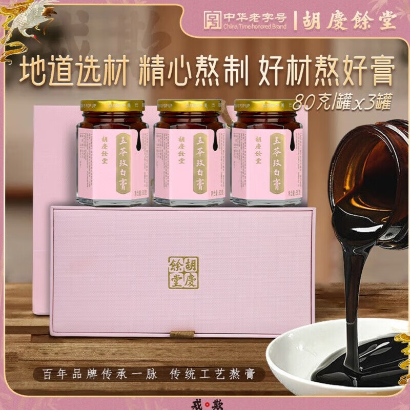 胡庆余堂玉苓玫白膏80克*3瓶礼盒补品营养品送礼送长辈老人-批号24年12月