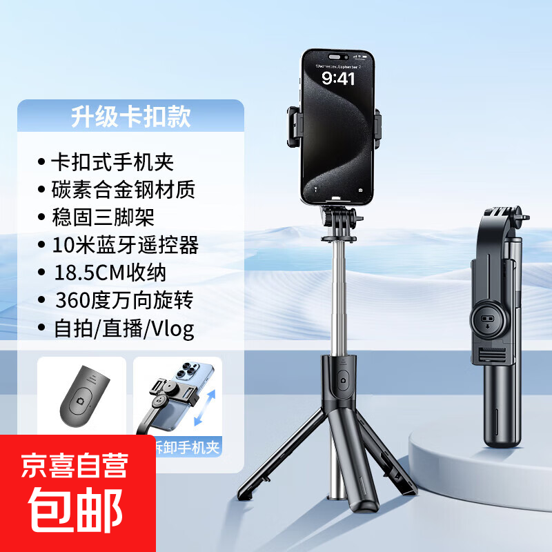奇丽塔三脚架手机直播支架防抖手机支架自拍杆拍照旅行摄像vlog便携可伸缩旋转落地多功能 F01【18.5cm收纳/蓝牙遥控/360°旋转】